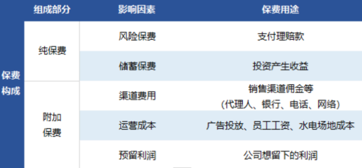 储蓄保费:这部分对于保险公司留出来赚取投资收益也很重要。