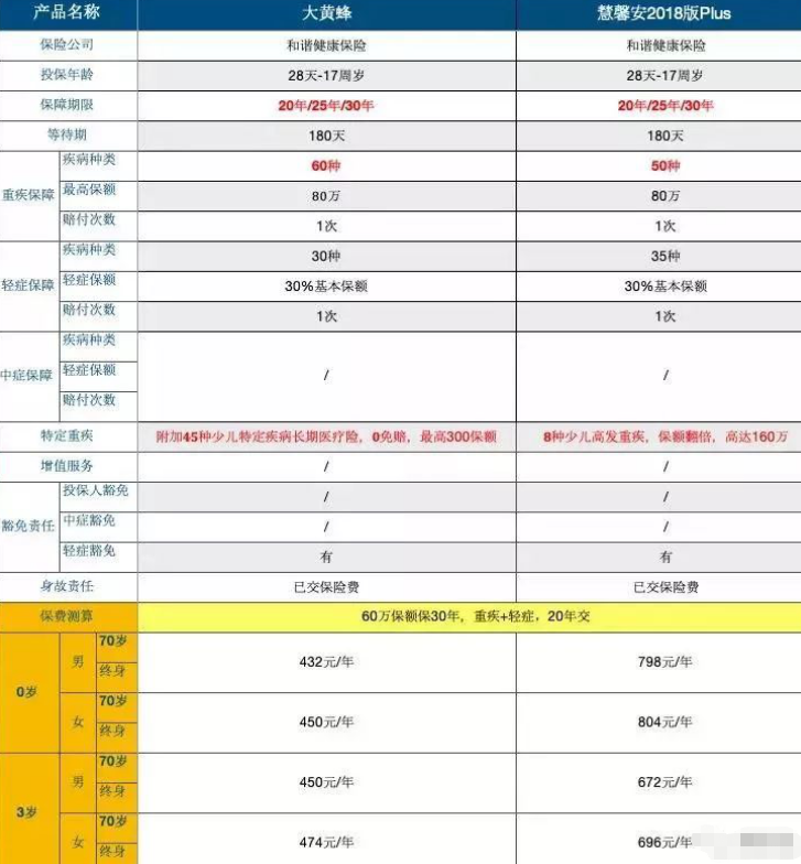 接下来,我们将分析和评估两款孩子的定期重大疾病保险大黄蜂、 慧馨安: