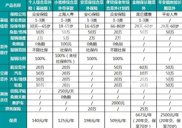 从上表可以看出,普通1年的意外险非常便宜,比如蜜蜂,50万保额,只要125元/年,连老人如孝欣保,只需509元/年。