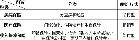 3、津贴类型:用于赔付被保险人因事故造成无法正常工作的收入损失。