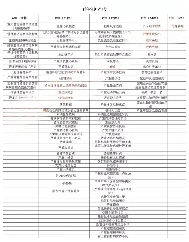 所以要获得多次赔付保额,重疾分组非常重要,让我们看看守卫者1号是如何分组: