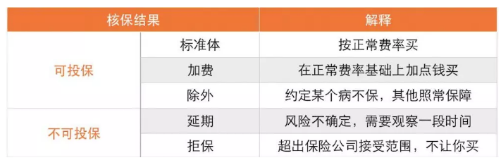 通常核保会有几个结果: